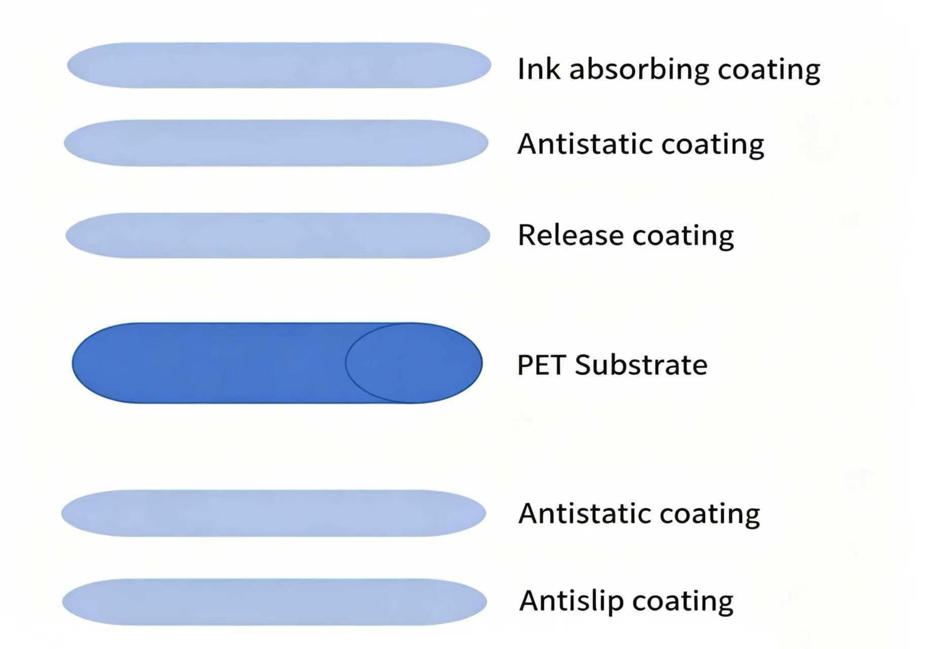 Struktur: Lapisan fungsional di kedua sisi—bagian depan untuk penyerapan + pelepasan tinta, bagian belakang untuk anti-Anti selip + antistatik; meningkatkan stabilitas pencetakan hingga 30%.